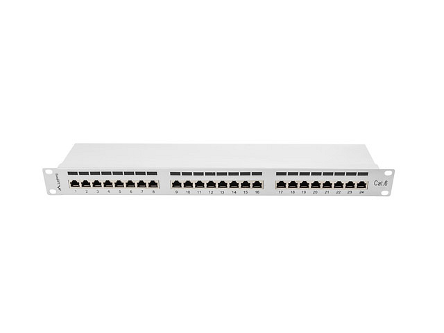 LANBERG PATCH PANEL 24 PORTŮ 1U 19" CAT.6 FTP STÍNĚNÝ ŠEDÝ