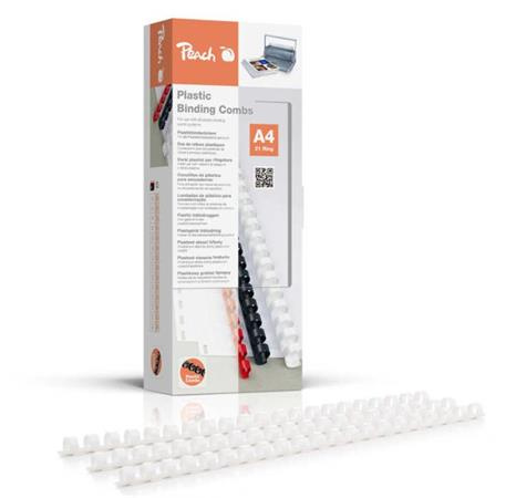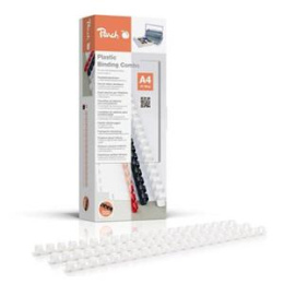 PEACH vazací hřbet plastový 21 Rg, A4, 10mm, bílá, 100ks