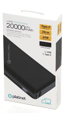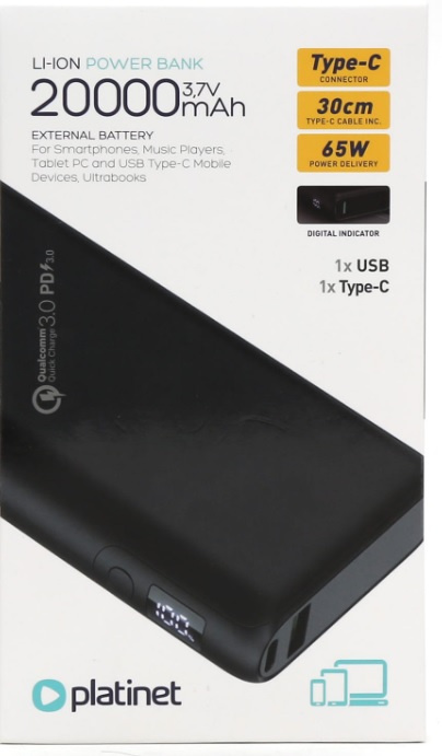 PLATINET POWER BANK 20 000 MAH PD65W QUICK CHARGE BLACK