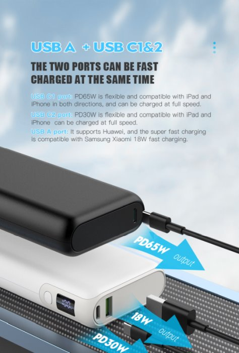 Celkový výstup:USB-C1+USB-C2: PD45W+PD30W