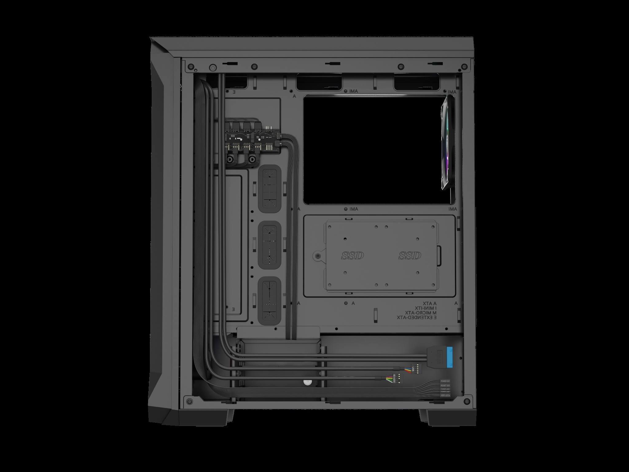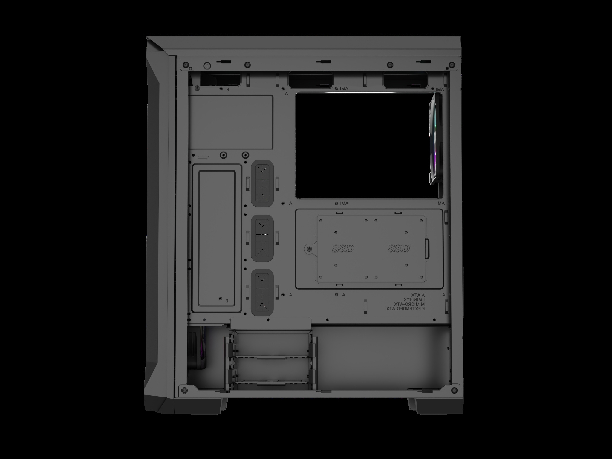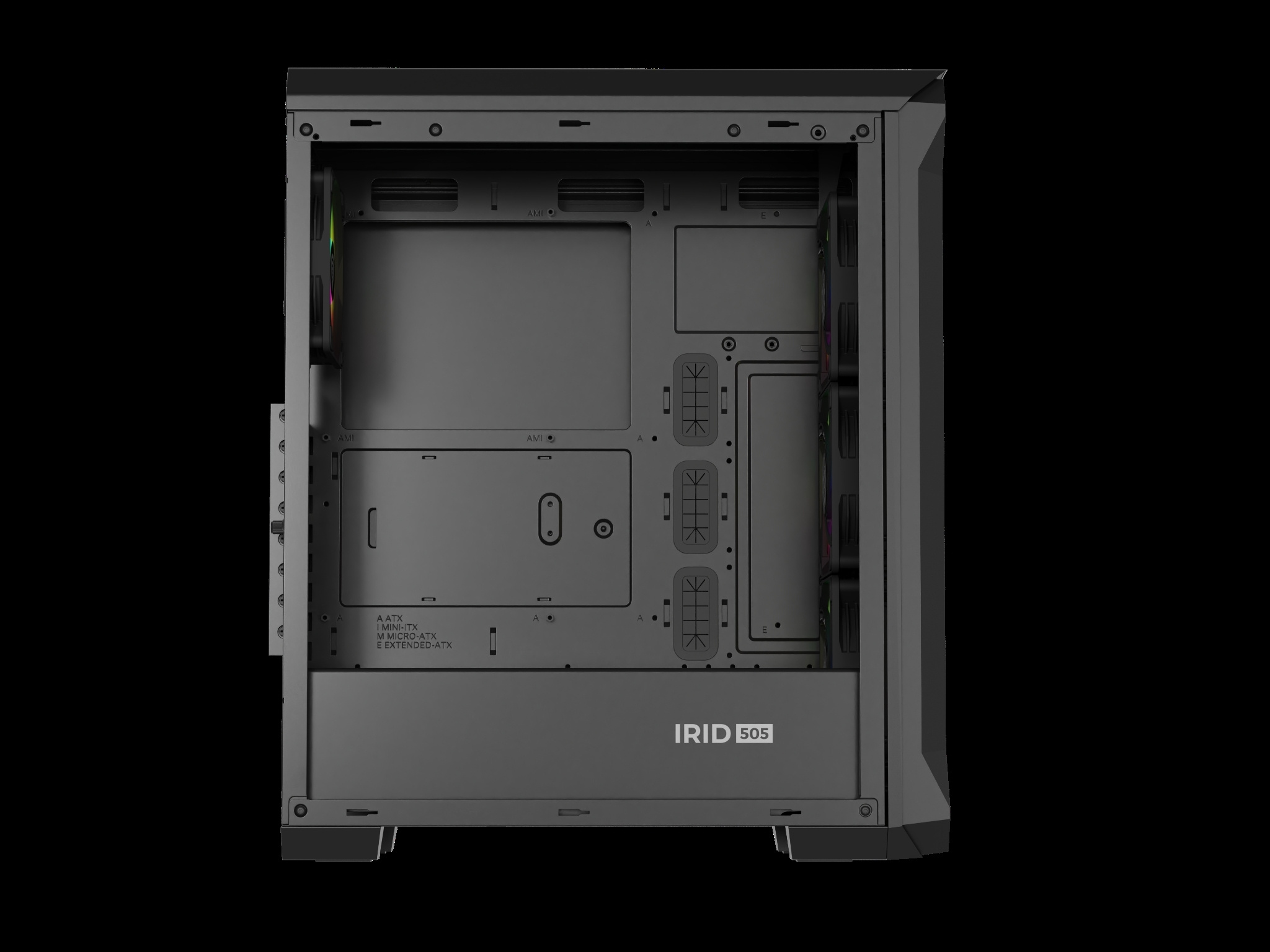 Dáváme vám do rukou plnou svobodu správy dat s rychlým přístupem. Irid 505 V2 ARGB vám dává možnost připojit až pět disků SSD. Kromě toho získáte prostor pro připojení dvou standardních pevných disků (nebo dalších 2 SSD). Skříň je také připravena pro 3 velikosti základních desek.