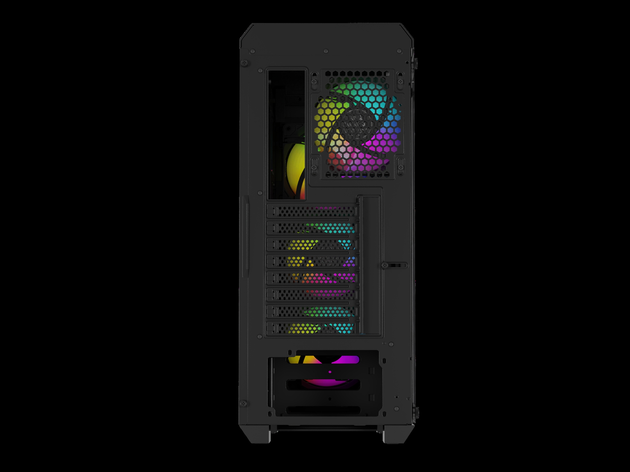 Rozšiřující zásuvky mají šroubovací krytky, a lze je tedy znovu sestavit. Otevřete pouze to, co potřebujete, a když zůstane slot prázdný, našroubujte jej. S Irid 505 V2 ARGB by mělo vše vždy vypadat úhledně a úžasně. Využijte boční panel z tvrzeného skla a podívejte se na funkční komponenty!