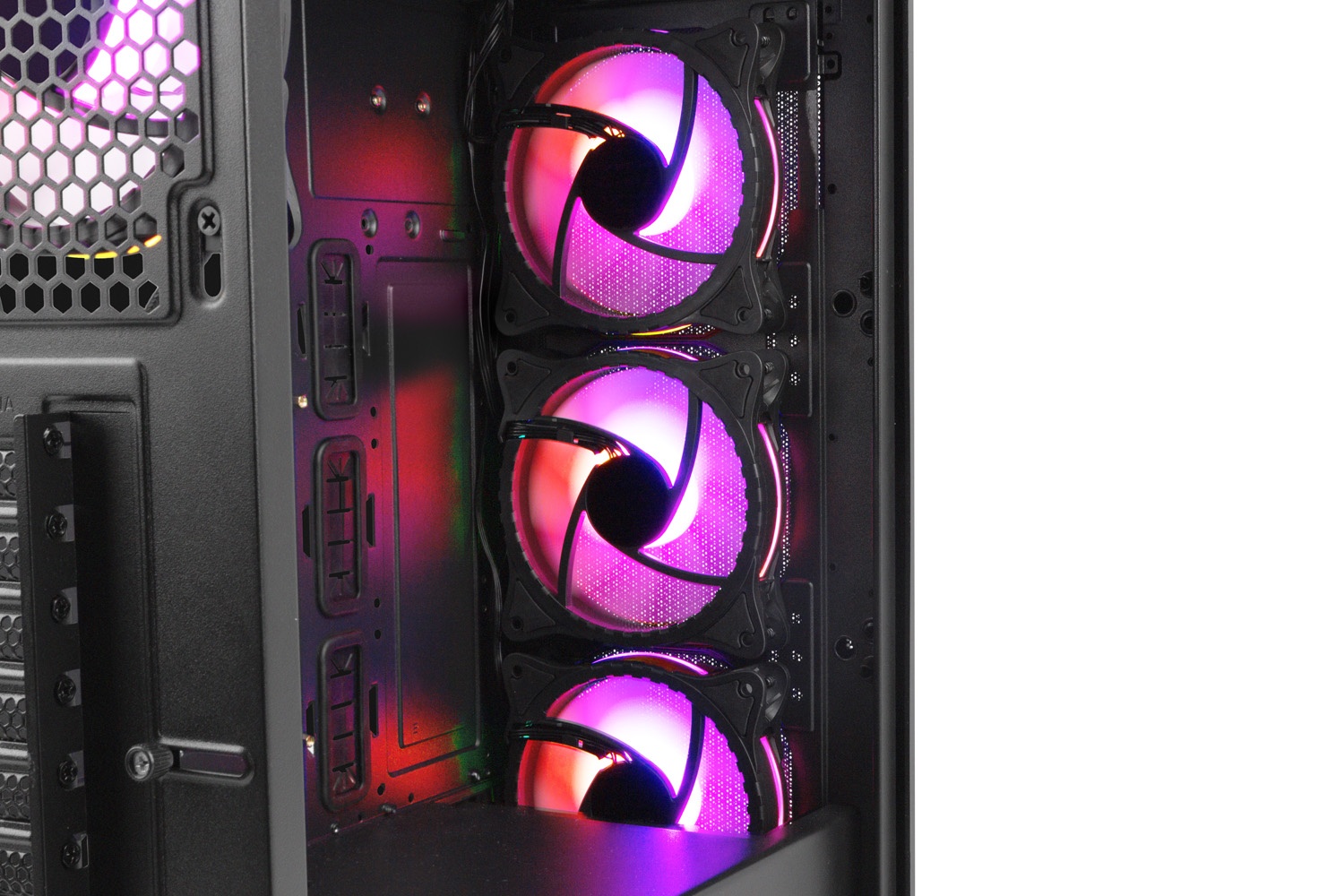Abyste se s počítačem cítili dobře, musí se i komponenty uvnitř cítit příjemně při správné teplotě. O vaše pohodlí a bezpečnost komponent se starají 4 kvalitní ventilátory Genesis Oxal ARGB 120, které se chovají mimořádně diskrétně. V případě potřeby vám skříň umožní namontovat další - včetně 140mm! Ventilátory jsou standardně namontovány uvnitř konstrukce skříně, což je optimální pro grafické karty, které mají délku až 355 mm. U delších grafických karet (až 380 mm) zajistí nejlepší proudění vzduchu konfigurace s předními ventilátory přemontovanými mimo konstrukci, což můžete snadno provést sami.