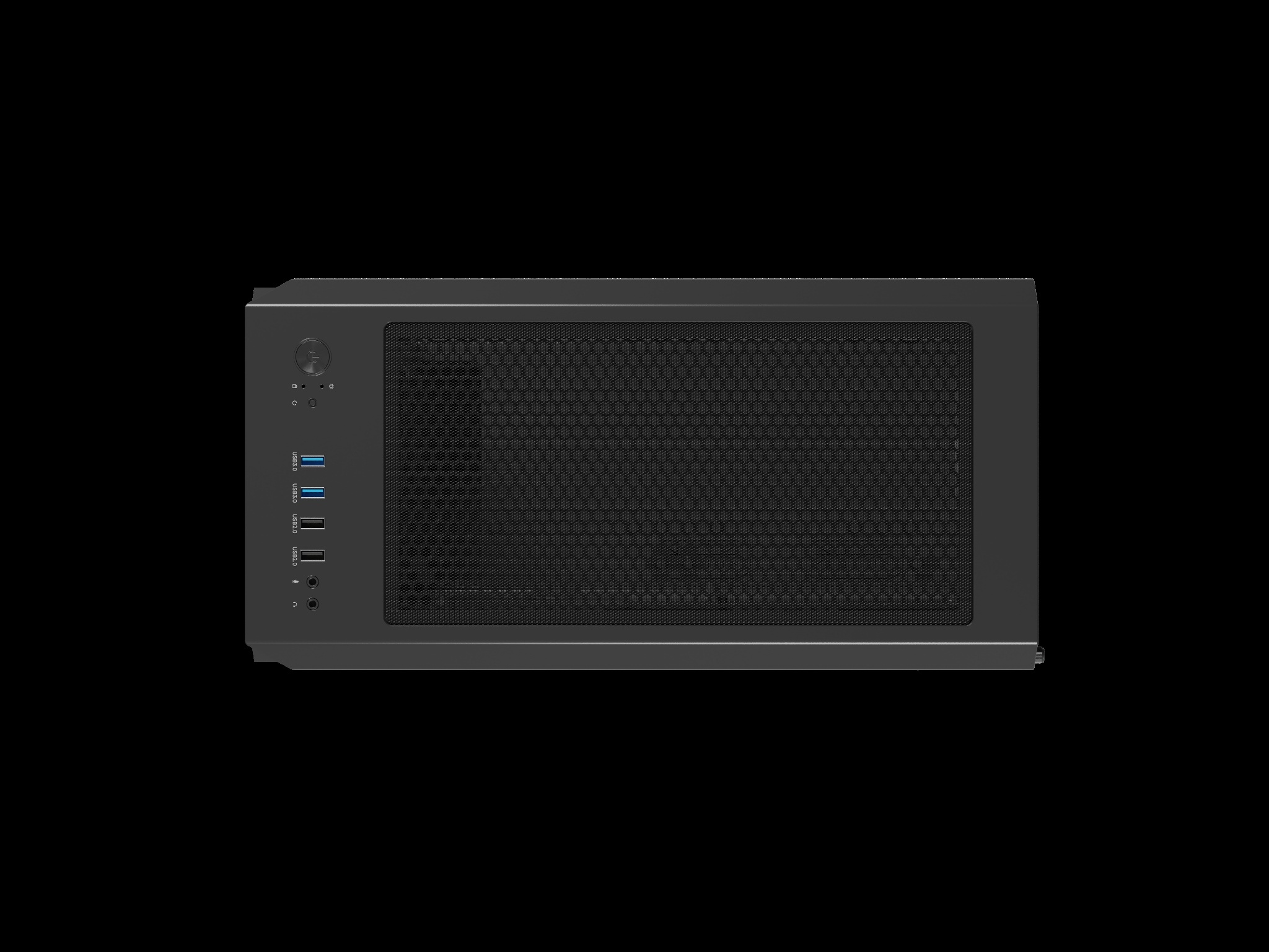 Na horní straně skříně najdete až 4 porty USB, z toho 2 USB 3.0. Pro vaše pohodlí jsme zahrnuli také dvě zásuvky jack, abyste mohli připojit sluchátka nebo mikrofon co nejblíže. Aby toho nebylo málo, je zde tlačítko zodpovědné za změnu režimů báječného ARGB podsvícení, aby vypadalo tak, jak si v danou chvíli přejete.