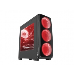 Počítačová skříň Genesis Titan 750 RED MIDI (USB 3.0), 4 ventilátory s červeným podsvícením