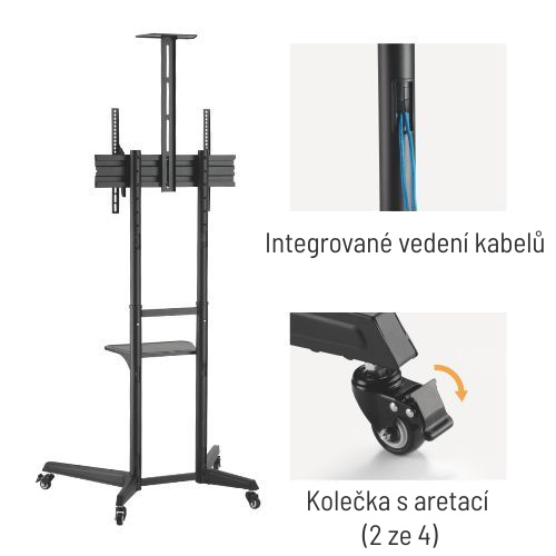 • 4 kolečka umožňují snadné a bezpečné přemístění stojanu dle potřeby, 2 kolečka s možností aretace
