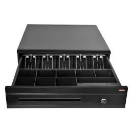 Pokladní zásuvka C425C - s kabelem, kovové držáky, 9-24V, černá