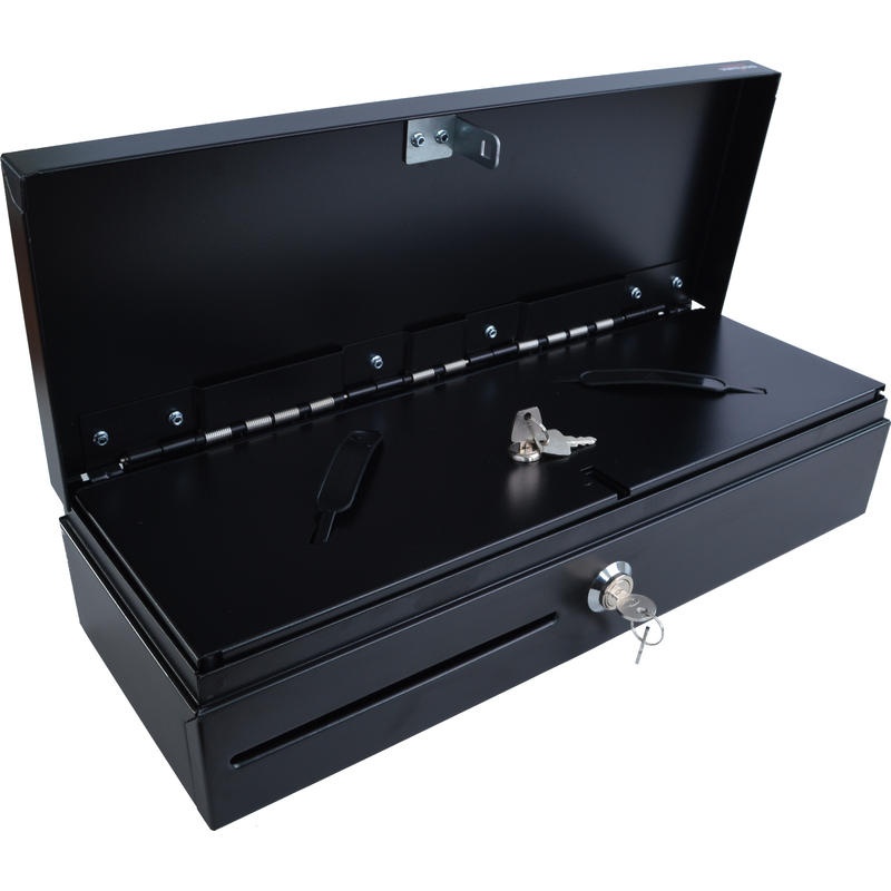 Pokladní zásuvka flip-top FT-460C - s kabelem, se zamykatelným krytem pořadače, 9-24V, černá