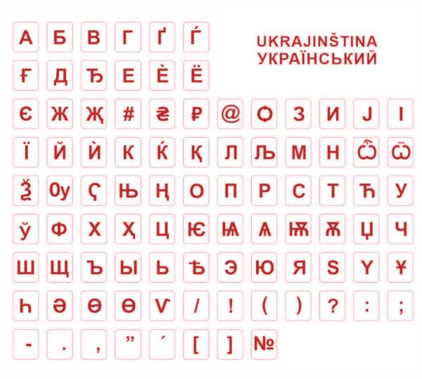 polepka na klávesnici - červená, ukrajinská