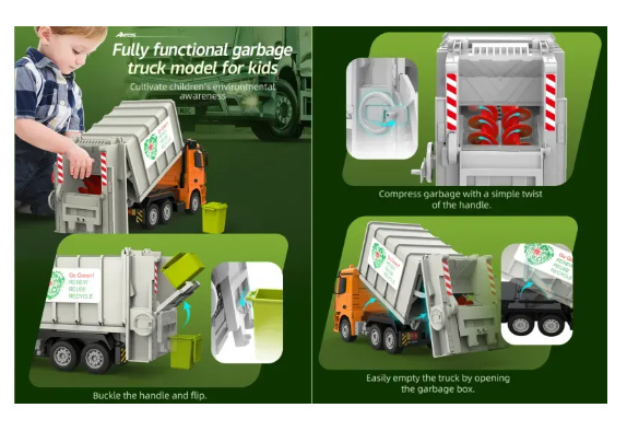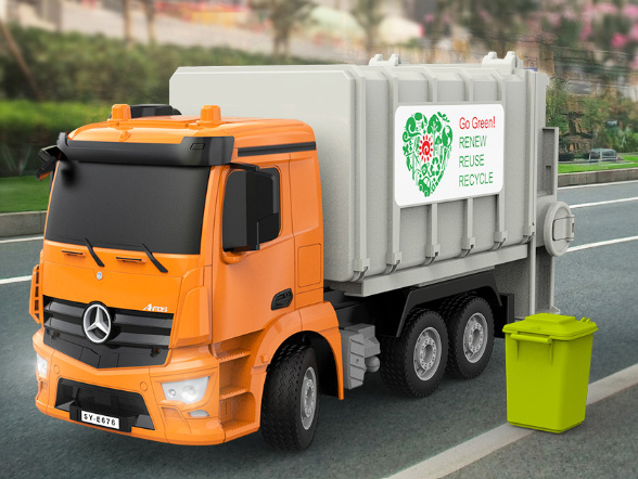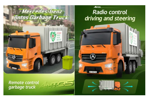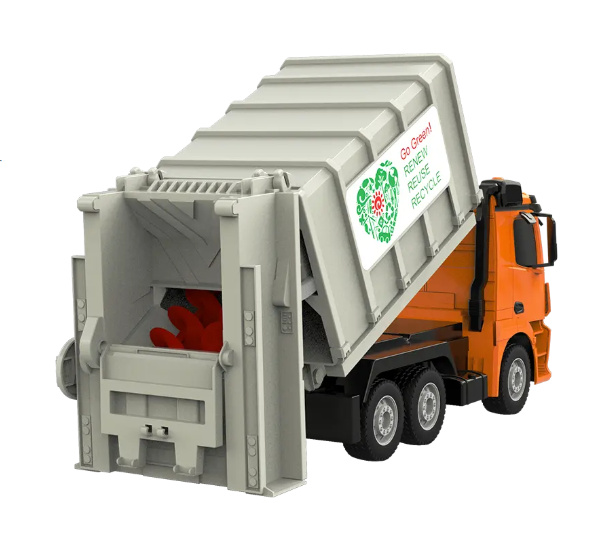 RC popelářské auto Mercedes-Benz 1/26Také jsou vaše děti nadšenci do popelářských aut? Právě pro vás tu máme tento špičkově propracovaný model popelářského vozu Mercedes-Benz v měřítku 1/26. Dostane vás svým propracovaným provedením, ale i funkčností.Popelářské auto na dálkové ovládáníTento dálkově ovládaný model RC popelářského auta vydrží jezdit až 30 minut. Dálkové ovládání funguje na frekvenci 2,4 GHz. Vaše modely se tak nebudou vzájemně rušit.Ruční sklápěčSoučástí balení je také popelnice. Tu můžete nacvaknout na sklopný dopravník a popelnici ručně vyprázdnit. Následně se odpadky posouvají do lisovací komory pomocí dvou spirálových dopravníků, které lze také ručně ovládat pomocí kliky vedle sklopného dopravníku. Zadní část pro vysypávání popelnic lze ručně otevřít, zároveň je možné i celou nádobu sklápět pro ulehčení vykládky.LED světlaRC popelářské auto je vybaveno předním LED osvětlením, které svítí vždy při jízdě vpřed. Obsah balení: RC model popelářského auta Dálkový ovladač Akumulátor USB nabíjecí kabel Popelnice Technické parametry: Měřítko: 1/26 Délka auta: 30 Šířka auta: 12 Výška auta: 16 Auto je vhodné na ven: ano Barva: oranžová Auto je vhodné do interiéru: ano Rychlost auta: 8 Kapacita akumulátoru v autě: 400 Napětí akumulátoru v autě: 3.6 Typ nabíječky: USB Výměnný akumulátor v autě: ano Napájení ovladače k autu: 2xAA Doba jízdy auta: 30 Dosah ovládání auta: 50 Frekvence ovládání RC auta: 2,4Ghz Konstrukce ovladače k autu: Páčkový Plynulá regulace rychlosti: ne Plynulá řízení zatáčení: ne Voděodolnost (stříkající voda): ne Vodotěsnost (potopení): ne
