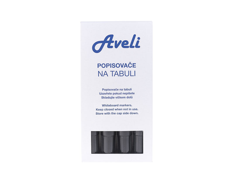 Popisovač pro tabule a flipcharty AVELI. Sada 4 černých popisovačů.