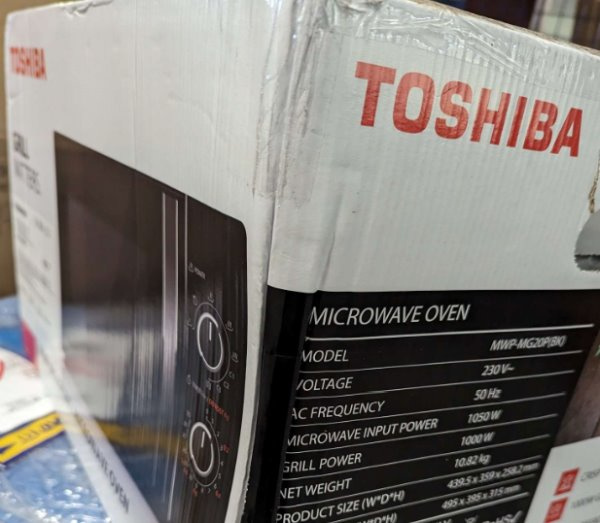 Mikrovlnná trouba TOSHIBA MWP-MG20P (BK) šířka 44 cm a hloubka 35,9 cm. Zařízení má rychlé odmrazování a časovač. Mikrovlnný výkon je 700 W a gril 1000 W.
