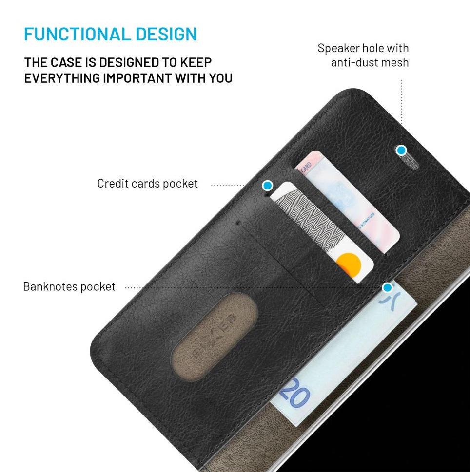 Flipové pouzdro FIXED Opus v novém elegantním designu udrží váš smartphone v bezpečí před všemi nástrahami všedního dne. Je navrženo přesně na míru danému modelu telefonu a kryje všechny jeho části včetně displeje. Pouzdro Opus je vyrobené z odolné syntetické kůže s prošíváním po okrajích, vydrží i hrubší zacházení, a přitom zachovává pouzdru decentní vzhled. Díky tenkému provedení pouzdro pouze minimálně zvětšuje rozměry telefonu a pohodlně se tak vejde do kapsy nebo do kabelky. Po odklopení přední části najdete větší kapsu na bankovky a tři menší přihrádky, které slouží pro uschování kreditních karet. Bezpečné zavírání pouzdra zajistí přezka s magnetickou pojistkou. Otevřené pouzdro lze nastavit horizontálně do polohy stojánku pro pohodlné sledování videa. Pouzdro FIXED Opus je tím pravým doplňkem pro váš telefon, který ochrání před pády, škrábanci i nečistotami, a navíc skvěle vypadá.