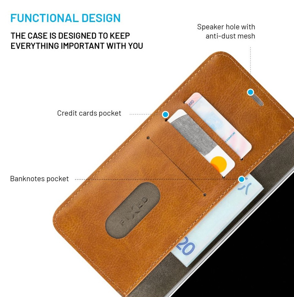 Flipové pouzdro FIXED Opus v novém elegantním designu udrží váš smartphone v bezpečí před všemi nástrahami všedního dne. Je navrženo přesně na míru danému modelu telefonu a kryje všechny jeho části včetně displeje. Pouzdro Opus je vyrobené z odolné syntetické kůže s prošíváním po okrajích, vydrží i hrubší zacházení, a přitom zachovává pouzdru decentní vzhled. Díky tenkému provedení pouzdro pouze minimálně zvětšuje rozměry telefonu a pohodlně se tak vejde do kapsy nebo do kabelky. Po odklopení přední části najdete větší kapsu na bankovky a tři menší přihrádky, které slouží pro uschování kreditních karet. Bezpečné zavírání pouzdra zajistí přezka s magnetickou pojistkou. Otevřené pouzdro lze nastavit horizontálně do polohy stojánku pro pohodlné sledování videa. Pouzdro FIXED Opus je tím pravým doplňkem pro váš telefon, který ochrání před pády, škrábanci i nečistotami, a navíc skvěle vypadá.