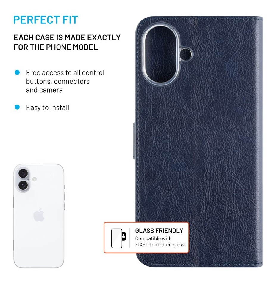 Pouzdro typu kniha FIXED Opus pro Apple iPhone 16 Plus, modré