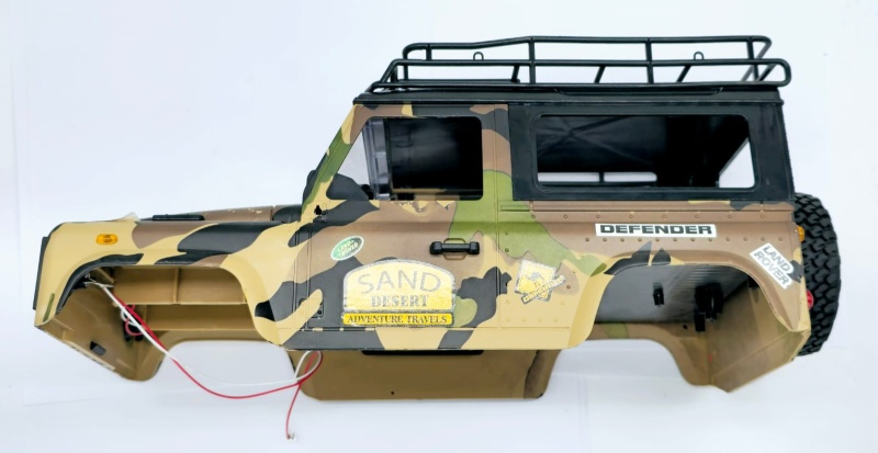 Použitá maskáčová karoserie pro RC auto RMT LAND ROVER 1/12Karoserie je použitá, drobné oděrky laku, chybí doplňky karoserie, možné polepy na karoserii.Základní osvětlení je součástí- viz foto. Foto karoserie je ilustrační...