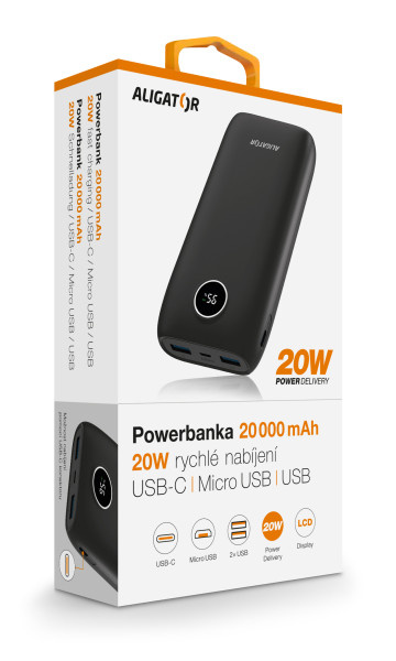 Powerbanka ALIGATOR PD20W + QC22.5W, 20 000 mAh