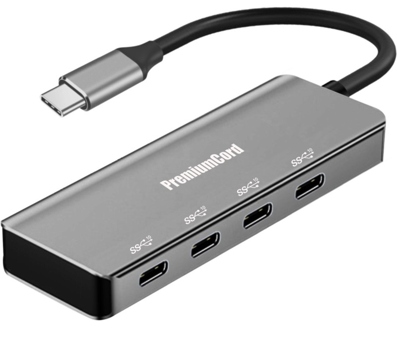 PremiumCord 5G SuperSpeed Hub USB-C na 4x USB 3.2 C Aluminum