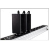- Druhý konektor: IEC C13 rovná zásuvka německého typu s ochranými plíšky po stranách. Vhodné pro připojení vidlice, která je vybavena zemnícími plíšky po stranách