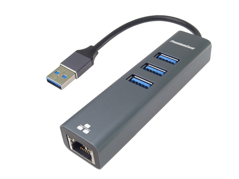 PremiumCord adaptér USB3.0 -> LAN RJ45 ETHERNET 10/100/1000 MBIT + 3x USB3.0 port
