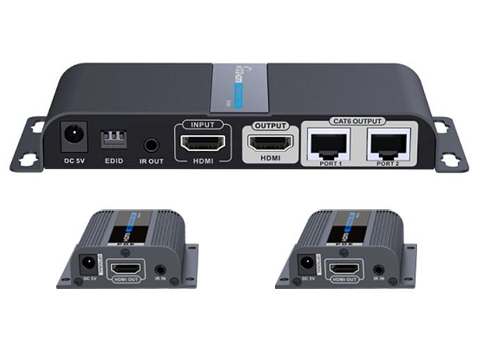 - Výstupy: 1x lokální výstup HDMI a vysílači, 2 x HDMI výstupy (Type A) na přijímačích