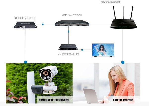Zařízení umožňuje po jednom síťovém kabelu nebo prostřednictvím LAN sítě přenést HDMI FULL HD signál až na 120m.