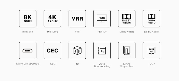 - Podporuje standard HDMI 2.1, HDMI 2.0 , HDMI1.4