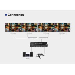Pokud se obraz po zapojení rozbočovače nezobrazí ihned po zapojení, vyčkejte cca 30s než dojde k rozpoznání HDMI signálu.