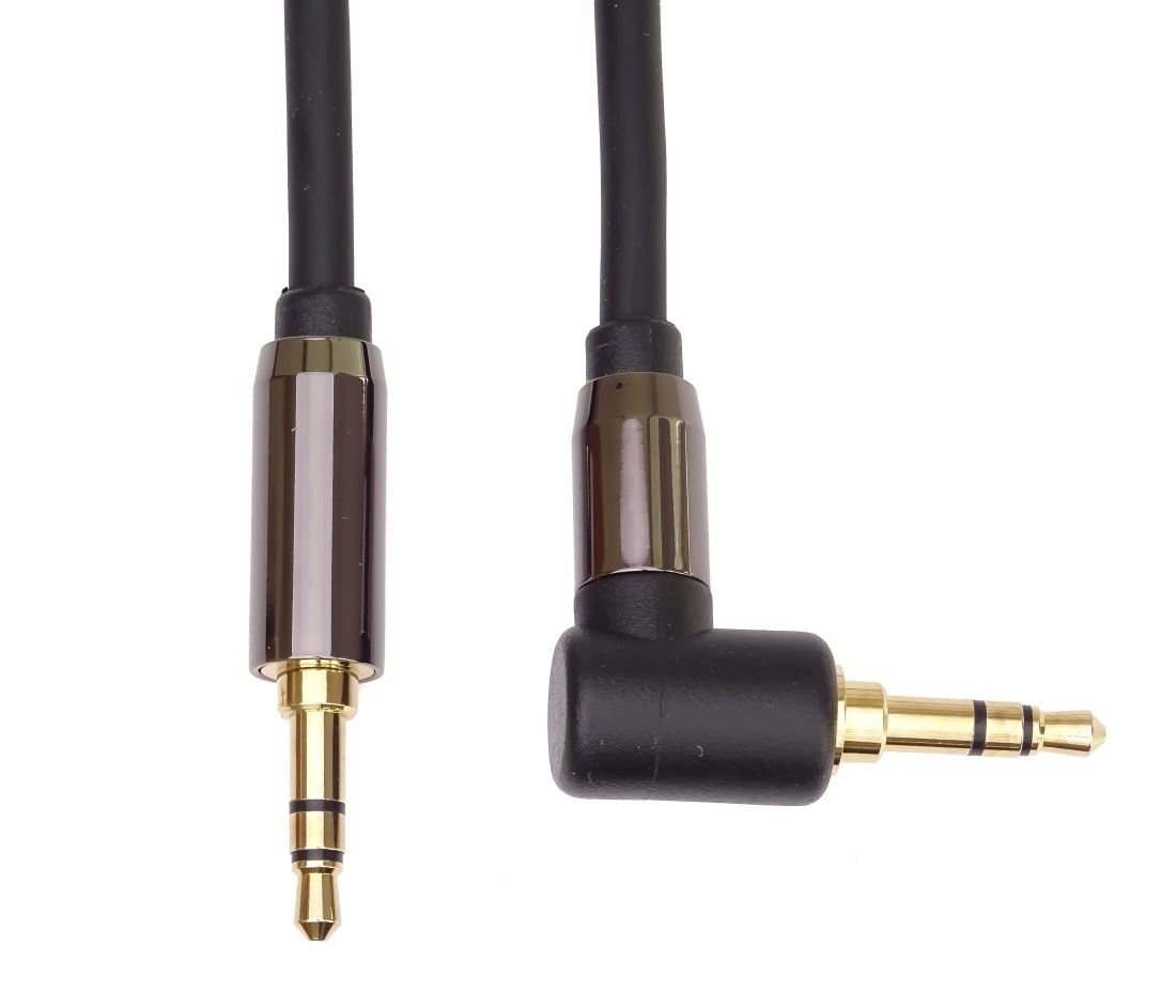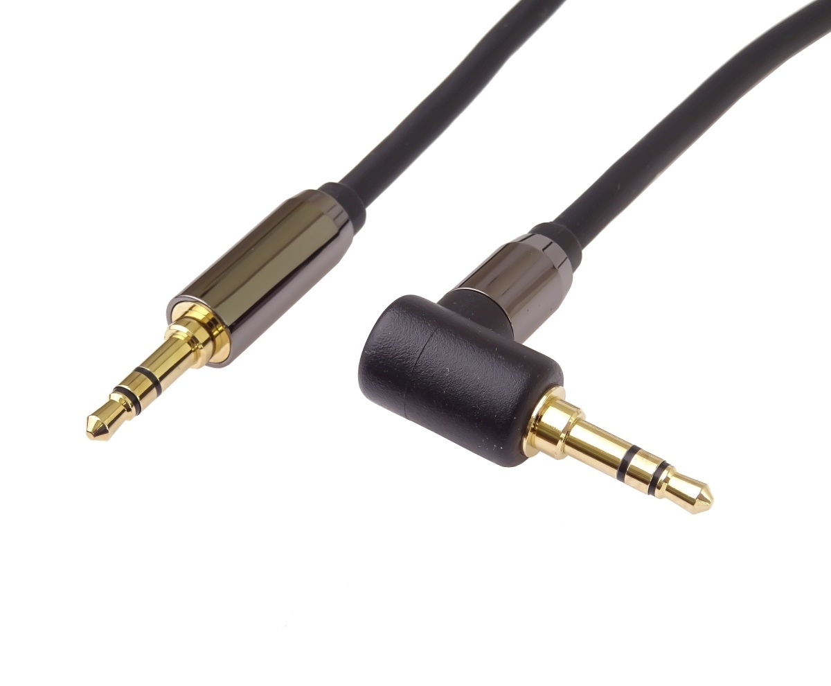 PremiumCord HQ stíněný kabel stereo Jack 3.5mm - Jack 3.5mm zahnutý 90° 1,5m