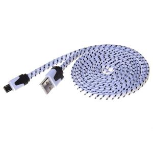 PremiumCord Kabel micro USB 2.0, A-B 2m, plochý textilní kabel, černo-bílý