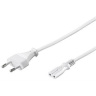Napájecí kabel v bílém provedení pro napájecí adaptér. Dvoužilový kabel je zakončený koncem v podobě ležaté osmičky.