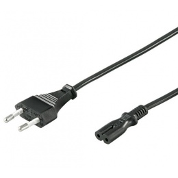 Napájecí kabel v černém provedení pro napájecí adaptér. Dvoužilový kabel je zakončený koncem v podobě ležaté osmičky.