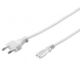 Napájecí kabel v černém provedení pro napájecí adaptér. Dvoužilový kabel je zakončený koncem v podobě ležaté osmičky.