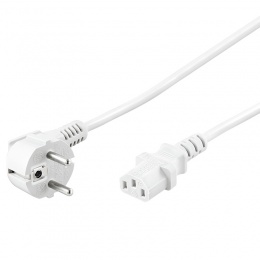 Napájecí kabel v bílem provedení pro počítač nebo monitor. Třížilový kabel je zakončený standardní přístrojovou zástrčkou.