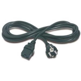 Napájecí kabel v černém provedení pro počítač nebo UPS s konektorem IEC 320 C19 pro 16A . Třížilový kabel je zakončený přístrojovou zástrčkou.