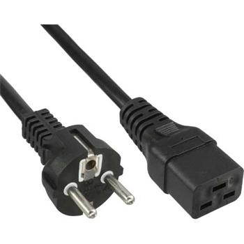 Napájecí kabel v černém provedení pro počítač nebo UPS s konektorem IEC 320 C19 pro 16A . Třížilový kabel je zakončený přístrojovou zástrčkou.