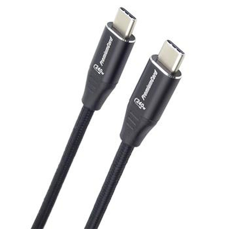 PremiumCord Kabel USB-C M/M, 240W 480Mbps černý bavlněný oplet, 0,5m