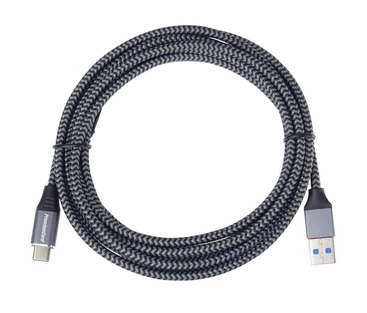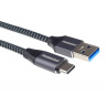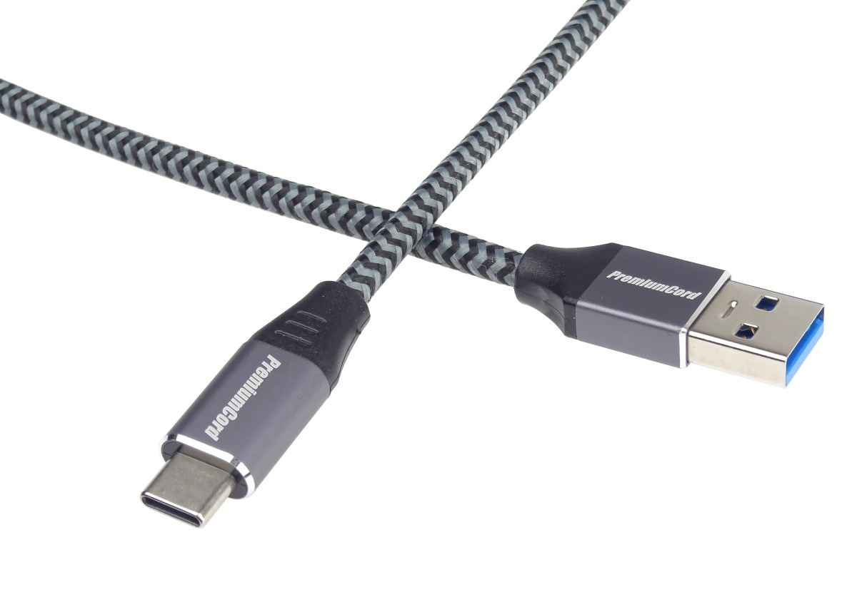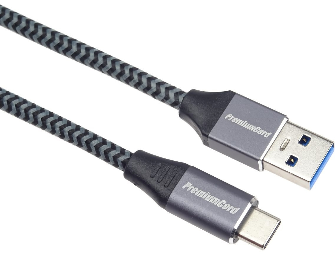 PremiumCord kabel USB-C - USB 3.0 A (USB 3.1 generation 1, 3A, 5Gbit/s) 2m bavlněný oplet a kovové hliníkové konektory