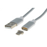 PremiumCord Magnetický micro USB 2.0, A-B nabíjecí a datový kabel 1m, stříbrný