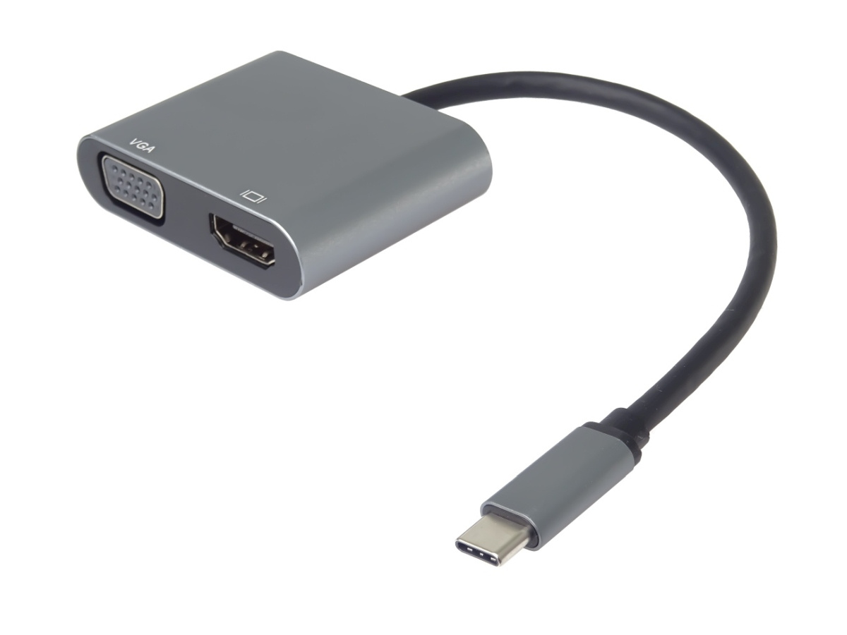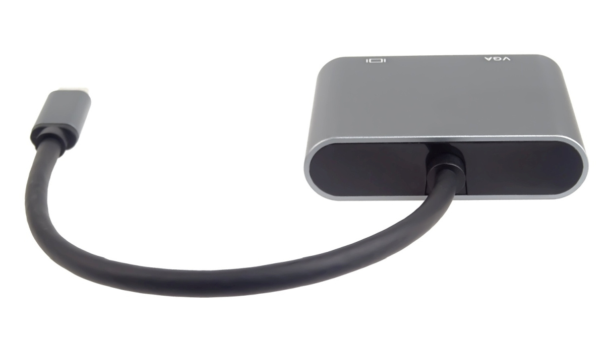 Tento adaptér umožňuje vysoce kvalitní převod videa a zvuku z USB-C konektoru na HDMI a VGA konektor pro dva monitory/TV/projektory. Funguje jako externí grafická karta s dvěma výstupy.