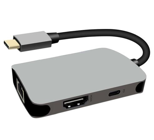PremiumCord USB-C na HDMI + RJ45 + PD adaptér, hliníkové pouzdro