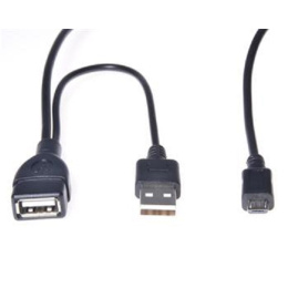 Tento kabel se zapojí konektorem Micro USB do chytrého telefonu, který podporuje funkci OTG. Do konektoru USB A/female se zapojí myš, flashdisk, externí disk, čtečky karet a další přenosná paměťová média. Konektor USB A/male se zapojí do USB nabíječky nebo počítače a umožňuje posílení napájení.