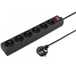 Prodlužovací přívod 230V 3m 6 zásuvek, vyp, černý