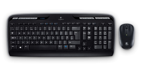 2 baterie velikosti AA (klávesnice) a 1 baterie velikosti AA (myš) (nainstalované)
