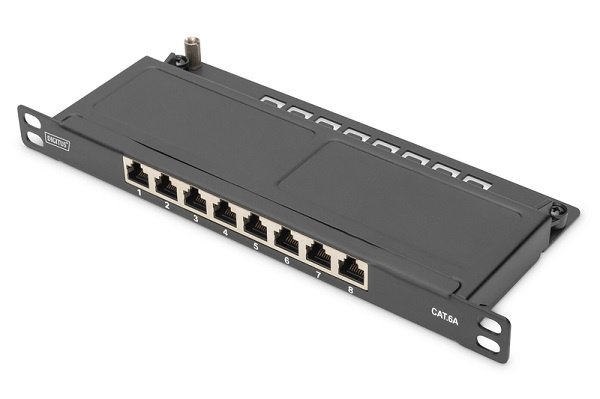 Propojovací panel DIGITUS CAT 6A, stíněný, 8portový, 0,5U, 10 ", černý