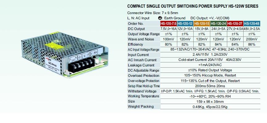 Průmyslový zdroj Carspa 12V=/120W spínaný HS-120/12
