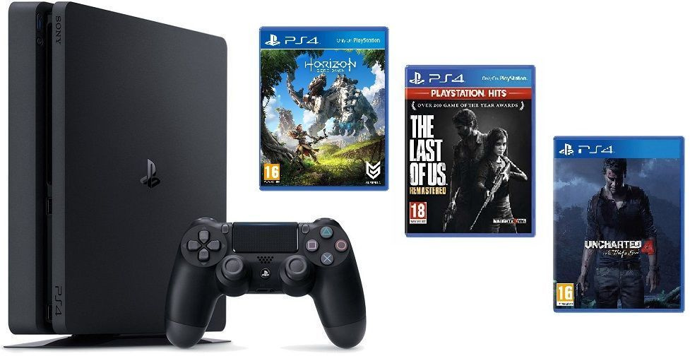Sony PlayStation 4 Slim 1TB + The Last Of Us + Uncharted 4: A Thief’s End + Horizon Zero Down