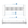D. Vzdálenost mezi dvěma rackovými sloupky (měření čtvercových otvorů racku střed-střed) je 18,3"(465 mm)