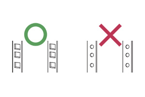 Rackové sady jsou kompatibilní pouze se serverovými racky se čtvercovými otvory 9,5 x 9,5 mm.