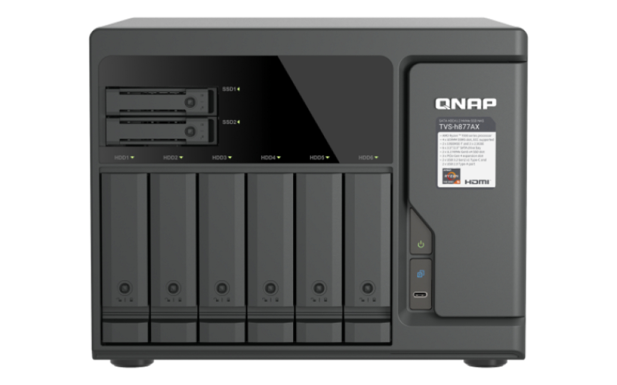 QNAP TVS-h877AX-R5-16G (AMD Ryzen 5, 16GB DDR5 RAM, 6x 3,5"+ 4x 2,5", 3x PCIe, 2x 2,5GbE, 2x 10GbE)